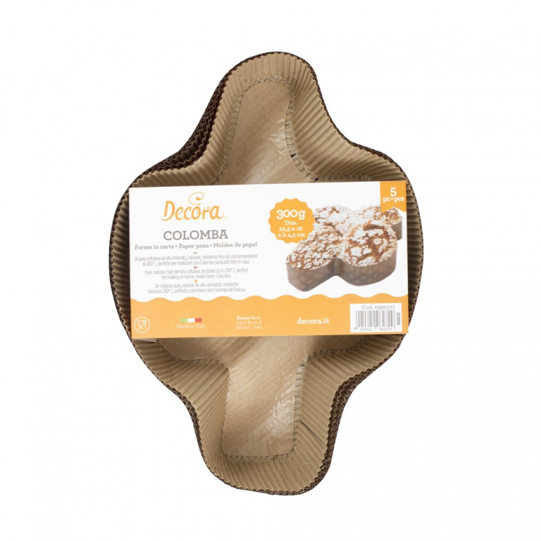 Set da 5 pezzi formatao 300 grammi Stampi per cottura in carta di pura cellulosa ad alta densità, naturale, resistente ad una temperatura di 200° c. Perfetti per realizzare dolci a forma di colomba.