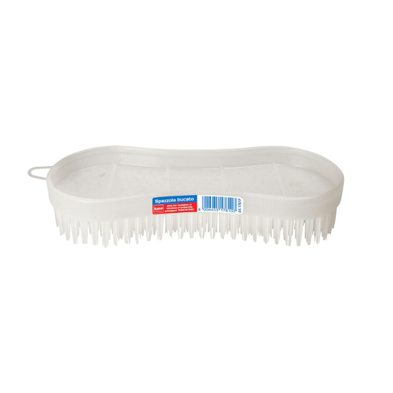 Produttore: Ippa S.r.l. Tipologia: Spazzola manuale per bucato e pulizie generali. Dimensioni: 16 x 7 x 3 cm. Colore: Bianca. Materiale: Supporto e setole in polipropilene di alta qualità. Caratteristiche e Benefici: