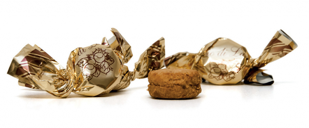 Prodotto chiave di tutta la gamma, nato per differenziarsi dal solito bacio di dama. Una frolla a base di nocciola varietà “Tonda Gentile Trilobata” 25%, e una sapiente lavorazione; farcito con una crema morbida a base di nocciole e cioccolato.
