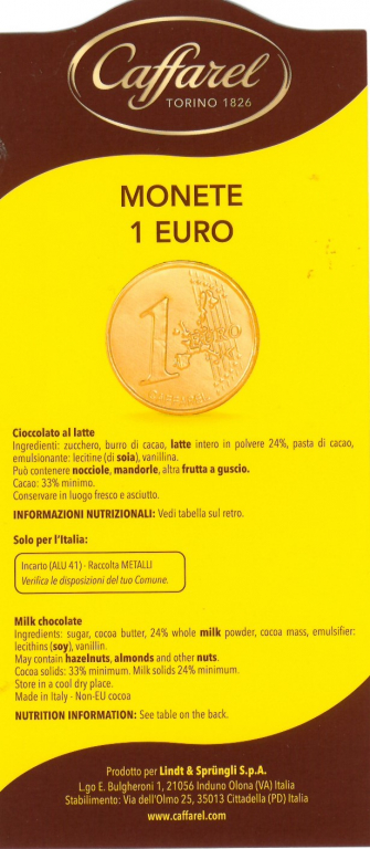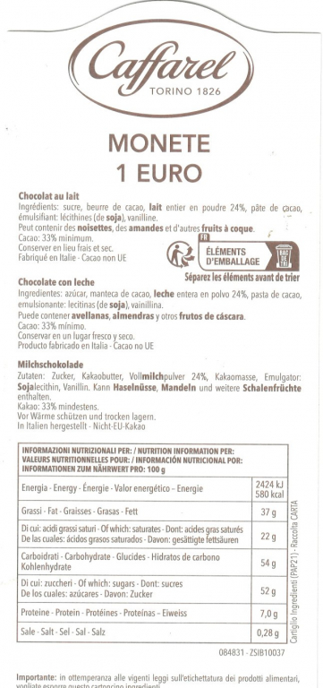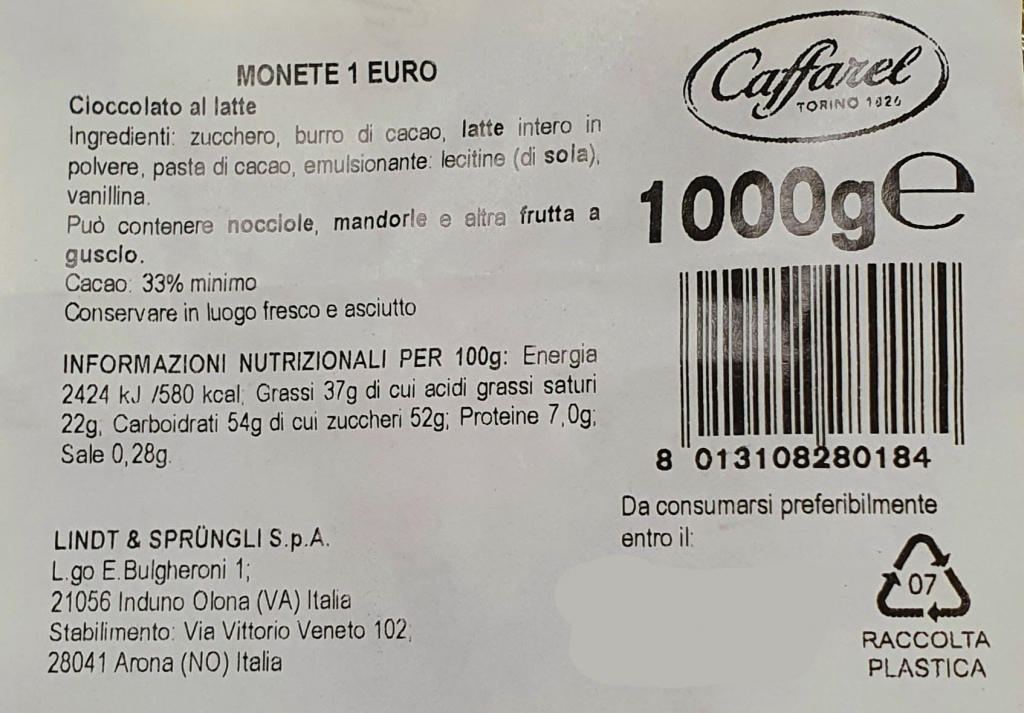 Caffarel Cioccolatini Monete 1 Euro Cioccolato Al Latte Pacco da 1 kg.