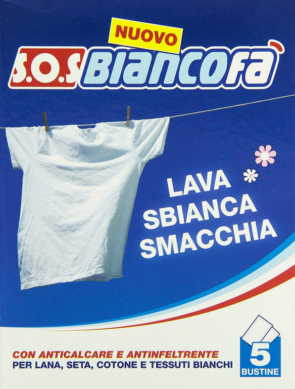 Produttore: Biancofà. Tipologia: Additivo sbiancante per bucato. Formato: Scatola da 5 buste monodose. Caratteristiche e Benefici: