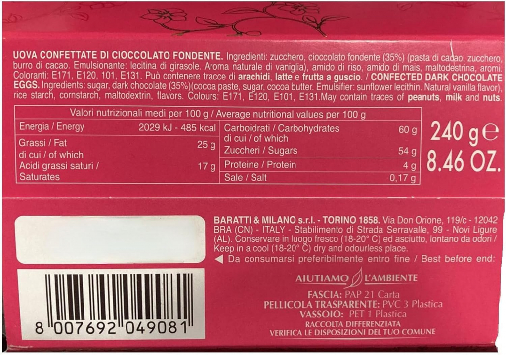 Baratti & Milano Uovo Di Cioccolato Confettate GALLINA 240 g. (6 uova)
