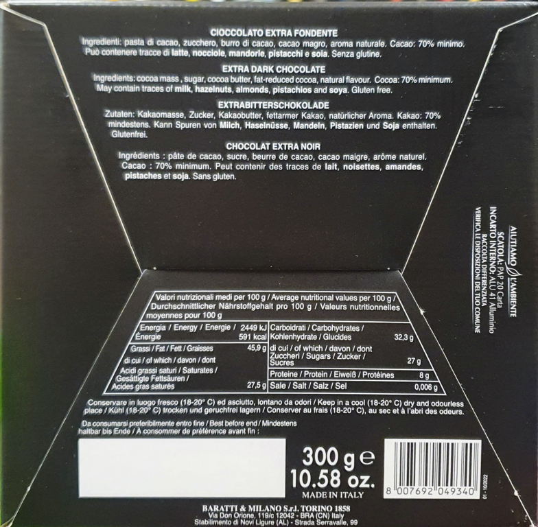 Baratti & Milano Uovo Fondente Extra Amaro 70 % 300 g.