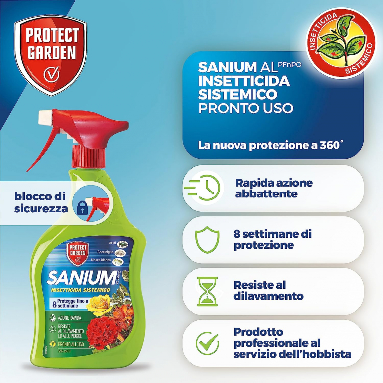 La nuova generazione di difesa: insetticida sistemico pronto all'uso con azione rapida che protegge la pianta per settimane, anche la vegetazione che cresce dopo il trattamento.