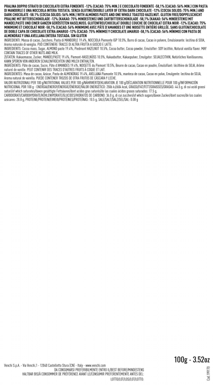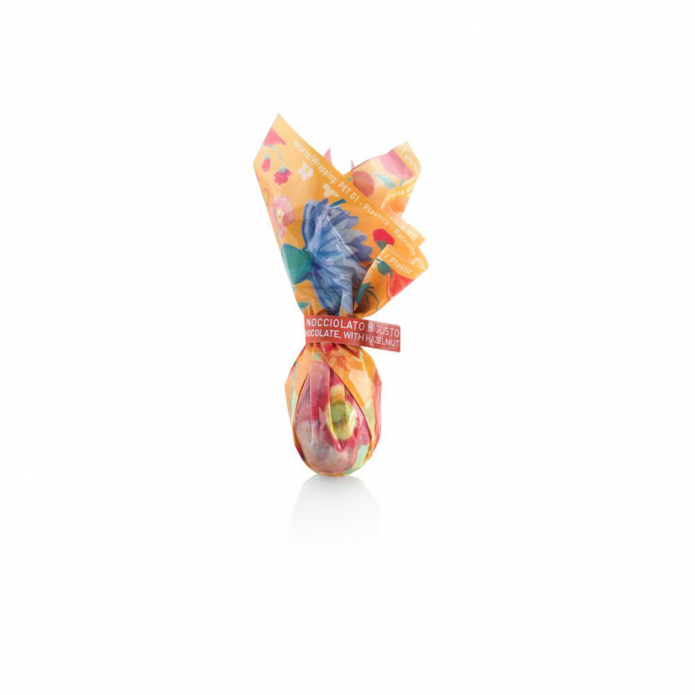 Ovetti di cioccolato fondente e pasta di mandorle con cuore di "Nocciola Piemonte IGP" tostata intera.