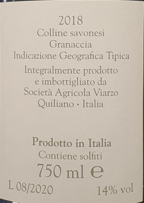 Viarzo Granaccia 2020 Trexenda è un vino rosso che esprime la passione e l'autenticità del territorio ligure, in particolare delle Colline Savonesi. Prodotto dalla cantina