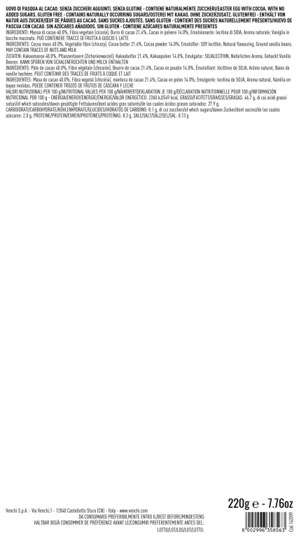 Linea NO Zuccheri Aggiunti: una nuova gamma di prodotti che riduce l’apporto di zuccheri della tua dieta quotidiana. No zuccheri aggiunti oltre a quelli naturalmente presenti negli ingredienti selezionati e di qualità, assenza di edulcoranti o ingredienti artificiali e alto contenuto di fibre. Perfetta per chi è attento al proprio benessere ma non vuole rinunciare al gusto. Scoprila in versione uovo al cacao extra fondente 75%.