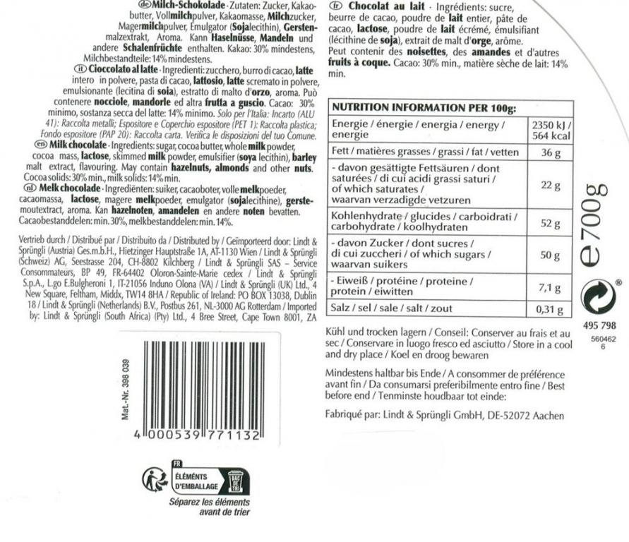 Lindt Babbo Natale di cioccolato 12 g.