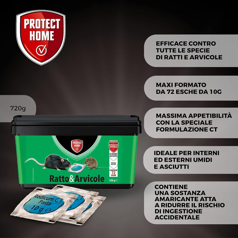 Obbligo di Sicurezza: Si consiglia vivamente l'uso di contenitori porta esca appositi a prova di manomissione (come la Scatola Porta Esca Protect Home) per proteggere bambini e animali domestici.