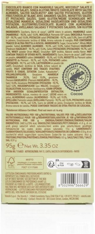 CIOCCOLATO EXTRA FONDENTE (CACAO: 70% MIN.) CON NOCCIOLE INTERE. SENZA GLUTINE INGREDIENTI: Massa di cacao, NOCCIOLA Piemonte IGP 25.0%, Zucchero, Burro di cacao, Emulsionante: lecitina di SOIA, Aroma naturale di vaniglia. PUÒ CONTENERE TRACCE DI ALTRA FRUTTA A GUSCIO E LATTE.