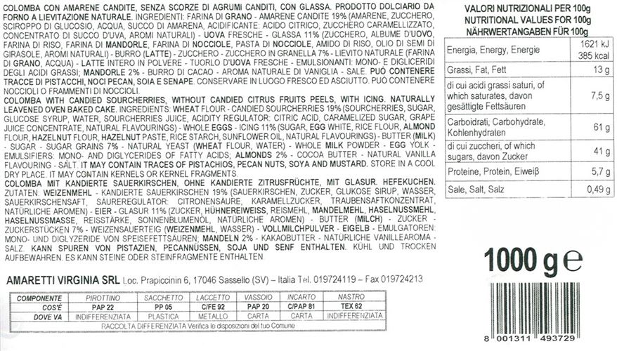 Virginia Colomba Con Amarene Candite Ciuffo 1000 g.