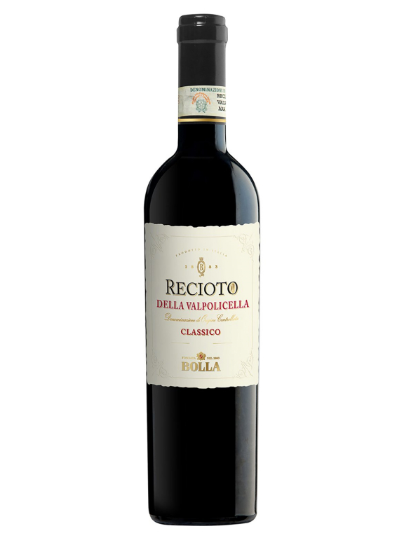 Produttore: Bolla (Cantina storica del Veneto). Denominazione: Recioto della Valpolicella Classico D.O.C.G. Annata: 2020 Vitigni: Corvina e Corvinone (70%-85%), Rondinella (10%-20%) e altri vitigni autoctoni. Gradazione Alcolica: 13% Vol. (a volte 13.5% Vol.). Formato: Bottiglia da 50 cl (0,5 L). Metodo di Produzione: Ottenuto con il metodo dell'Appassimento (uve lasciate appassire al chiuso fino a marzo dopo la vendemmia tardiva di ottobre), e fermentazione interrotta per mantenere un alto residuo zuccherino. Affinamento di circa 12 mesi in barrique.