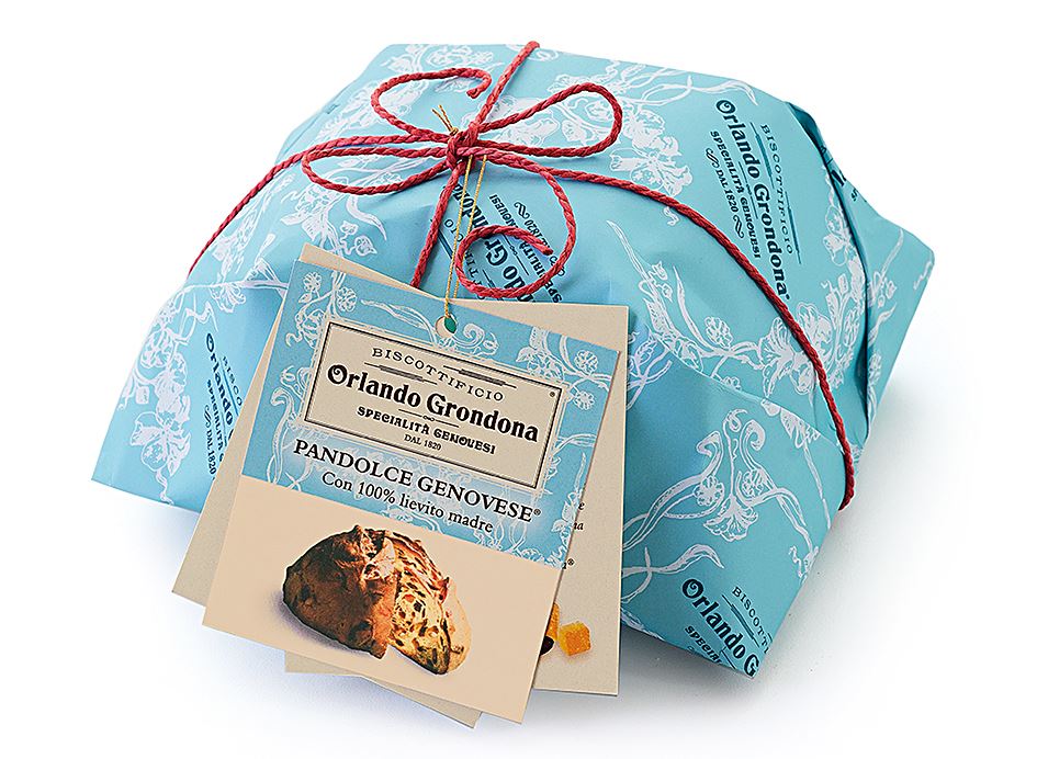 PANDOLCE GENOVESE con 100% LIEVITO MADRE Un Pandolce tipico che riporta alla storia dei navigatori genovesi. Grondona lo produce esclusivamente con lievito madre e lo arricchisce con vera scorza di arancio e vero cedro, scelti e canditi espressamente per i suoi prodotti, con pinoli e uvetta di Smirne.
