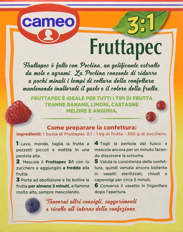 per 1 kg. di frutta e 350 gr. di zucchero (ogni busta)