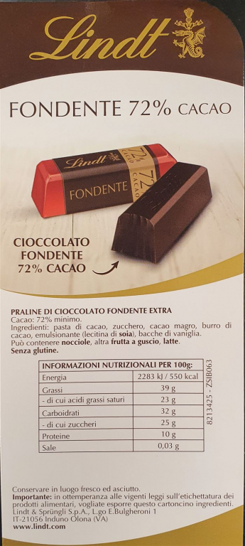 Lindt Cioccolatini Lingottino Fondente 72% Pacco Da 1 kg.