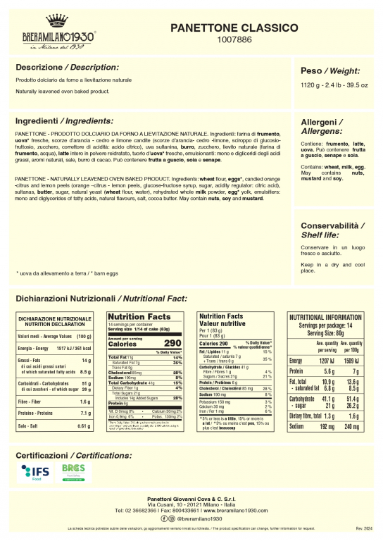 panettone tradizionale 3 libbre milanesi 1,12 kg