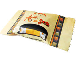 TORRONE FARCITO CON PAN DI SPAGNA IMBEVUTO DI LIQUORE STREGA RICOPERTO DI CIOCCOLATO FONDENTE.