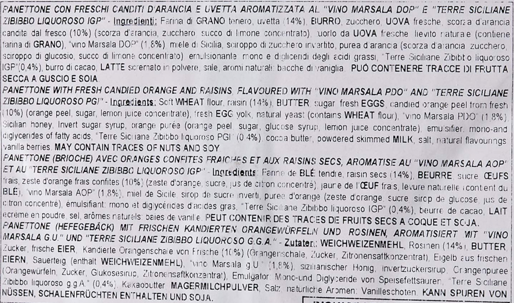 Dolce artigianale da forno con freschi canditi d’arancio e uvetta aromatizzata al Marsala e Zibibbo, incarto a mano.