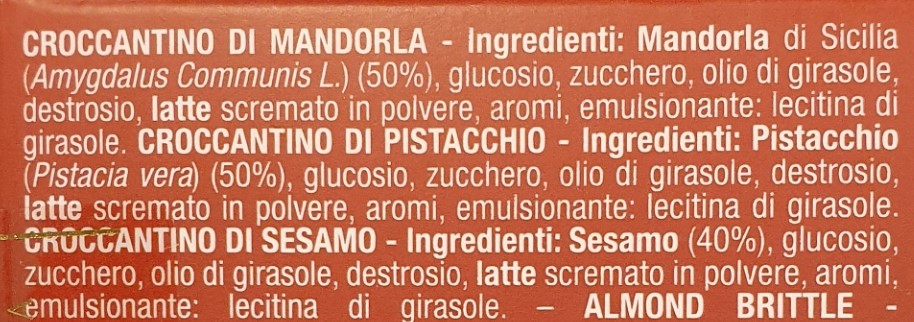 Dolce croccante al pistacchio, mandorle e sesamo.