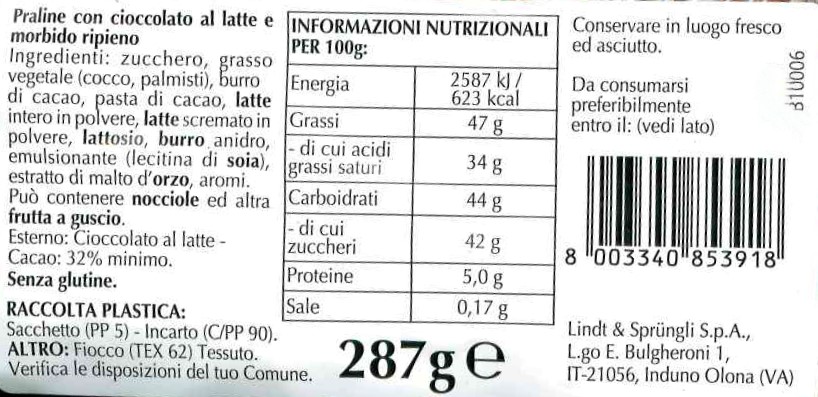 Lindt Cioccolatini Boules Lindor Latte Sacchetto 287 g.