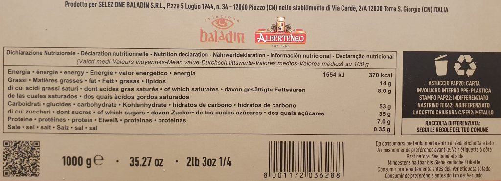 Uva sultanina non trattata, buccia d’arancia candita e una deliziosa glassatura con mandorle.
