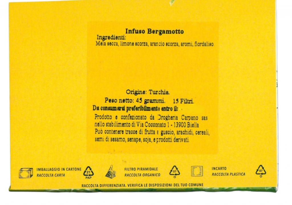 Prodotto e confezionato da Drogheria Carpano sas nello stabilimento di Via Cocconato, 1 13900 Biella