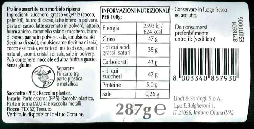 Lindt Cioccolatini Boules Lindor Assortiti Sacchetto 287 g. LATTE COCCO CARAMELLO SALATO