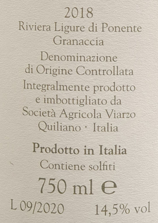 Viarzo Granaccia DOC 2020 Bricco Dei Bambini: L'Anima Spagnola della Liguria