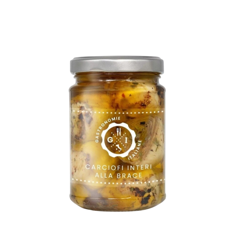 Gusto Autentico del Fuoco: carciofi selezionati e lavorati con cura, grigliati alla brace per esaltarne il sapore naturale e conservati in un olio delicato che ne preserva la fragranza e la consistenza carnosa.