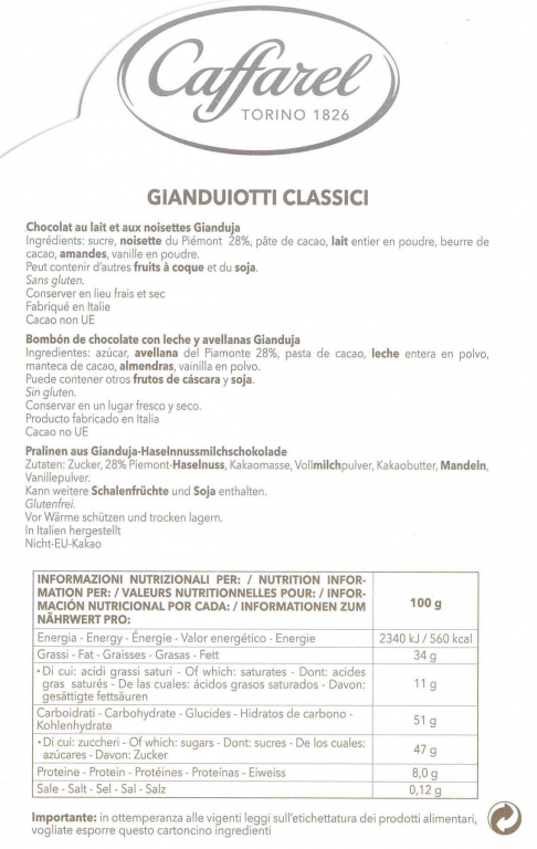 Il Gianduiotto è il prodotto più celebre e apprezzato di Caffarel, grazie al profumato impasto e all'inconfondibile forma a barchetta.