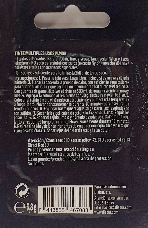 N.MOR TINTA MULTIUSO è una tintura a bollitura adatta per piccoli indumenti sia in fibra naturale che in Nylon o Lycra.