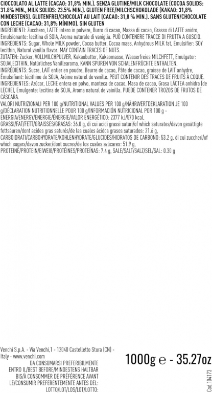 CIOCCOLATO AL LATTE (CACAO: 31,8% MIN.). SENZA GLUTINE